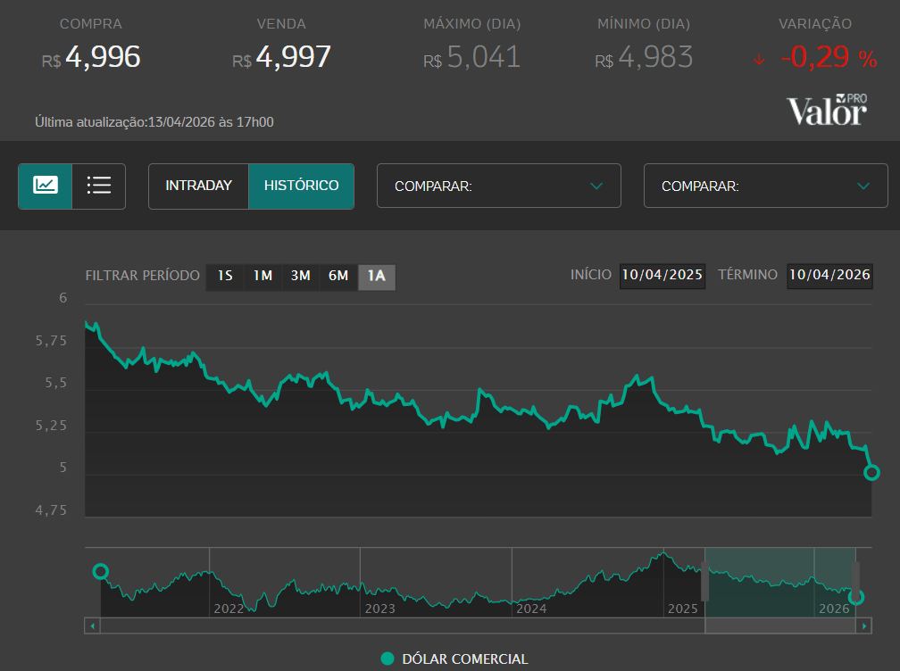 💵 DÓLAR: -0,29% | R$ 4,99